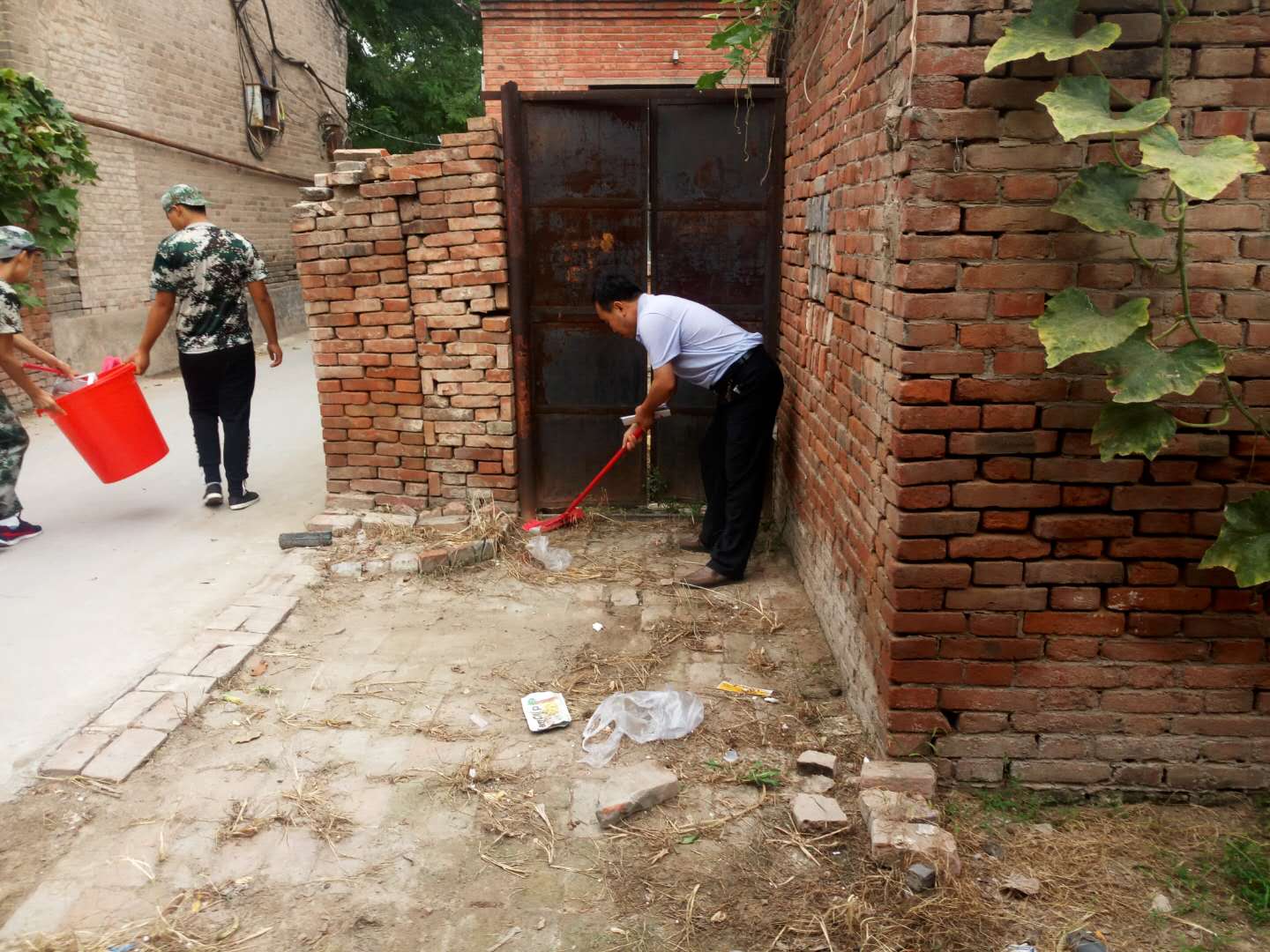 活动过程中,志愿者们在党员马学增的带领下,带着扫把、搓斗、铁锨等工具,义务为社区居民打扫环境卫生,清理路边、花坛、墙壁等垃圾。志愿者们热情高涨,干得热火朝天,很快就将小区卫生打扫的焕然一新。